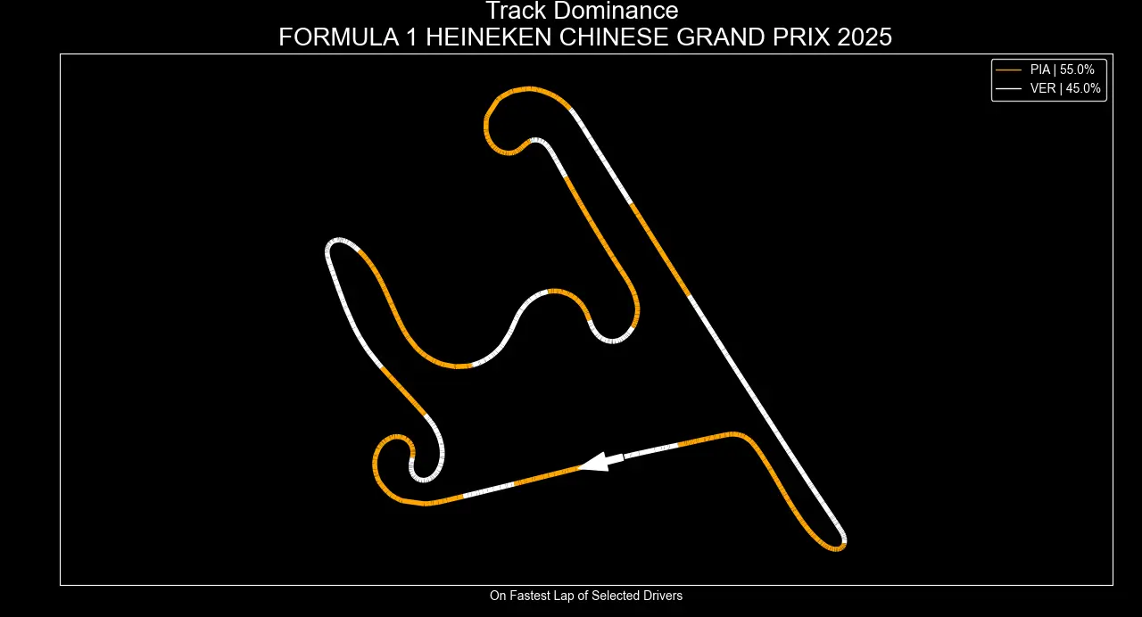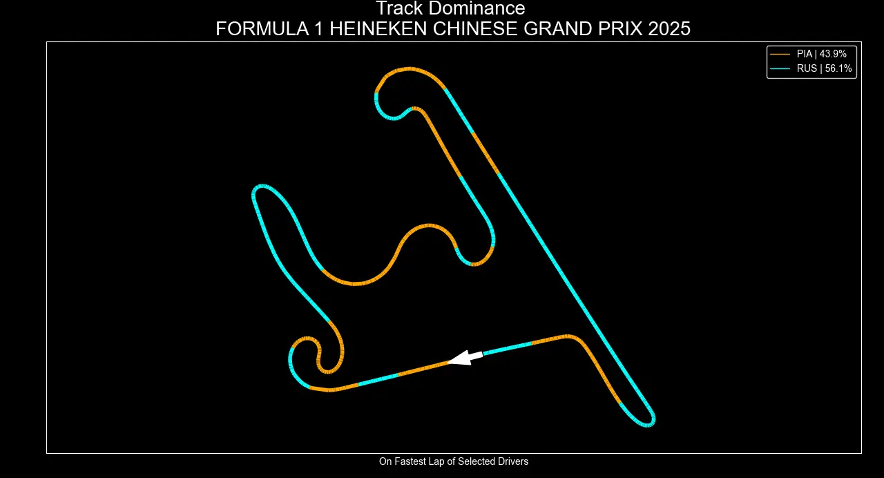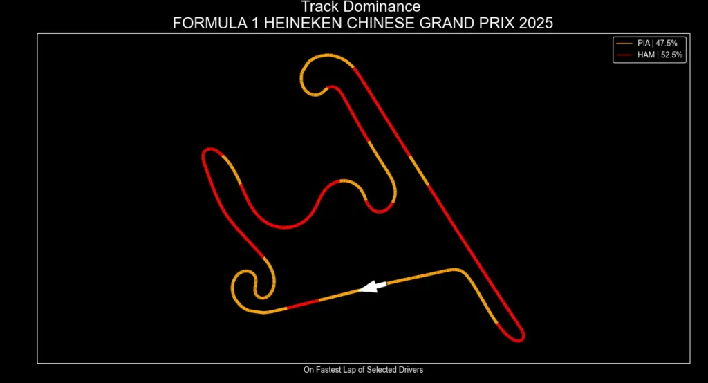 Al contrario, Ferrari dai dati ha perso un po’ di competitività nelle curve, un avvenimento che può essere legato a diversi fattori. Può essere stata una scelta consapevole sulle modifiche di assetto dopo aver visto l’ottima gestione gomma della SF-25 nella Sprint Race – non avendo effettuato simulazioni passo gara in FP2 – oppure un po’ di perdite di prestazione con l’aumento di 1ps di pressione che comunque non dovrebbe impattare la prestazione delle monoposto, ma è un opzione non scartata dallo stesso Charles Leclerc, insieme alle stesse modifiche di setup. Viene subito facile ricollegarlo a quanto successo in Australia, con la perdita di perfomance tra Venerdì e Sabato, ma la SF-25 in questo caso è rimasta comunque abbastanza competitiva e bilanciata, seppur più difficile da guidare come afferma Lewis Hamilton. Sarà interessante verificare il comportamento in gara per poter raccogliere ulteriori risposte su questo cambiamento, che come risultato ha portato Ferrari ad essere l’unico team in Top 10 a non migliorare i tempi della Sprint Qualifying.