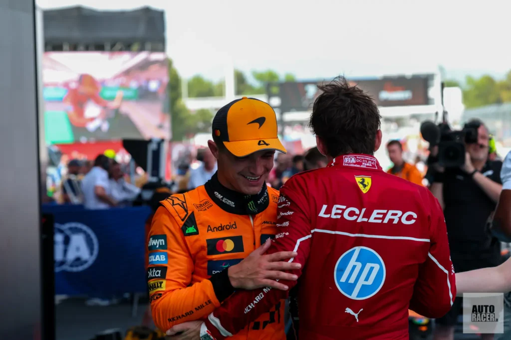 Interrogato sull’episodio prima della decisione degli steward, Leclerc aveva dichiarato: “Credo che lui sapesse che sarebbe stata molto difficile con le gomme che aveva. Non c’è stato niente di speciale. Ho sorpassato all’interno, lui ha cercato di spingermi sul lato sporco della pista, ma ho avuto la meglio perché ero più veloce grazie al suo errore. Poi ho cercato di prendere la scia della McLaren, sono andato un po’ a sinistra. Lui non sembrava volersi muovere e ci siamo toccati un po’, ma non c’è stato niente di speciale. Se questo non si può più fare, siamo messi male, quindi penso che non ci sarà niente“.