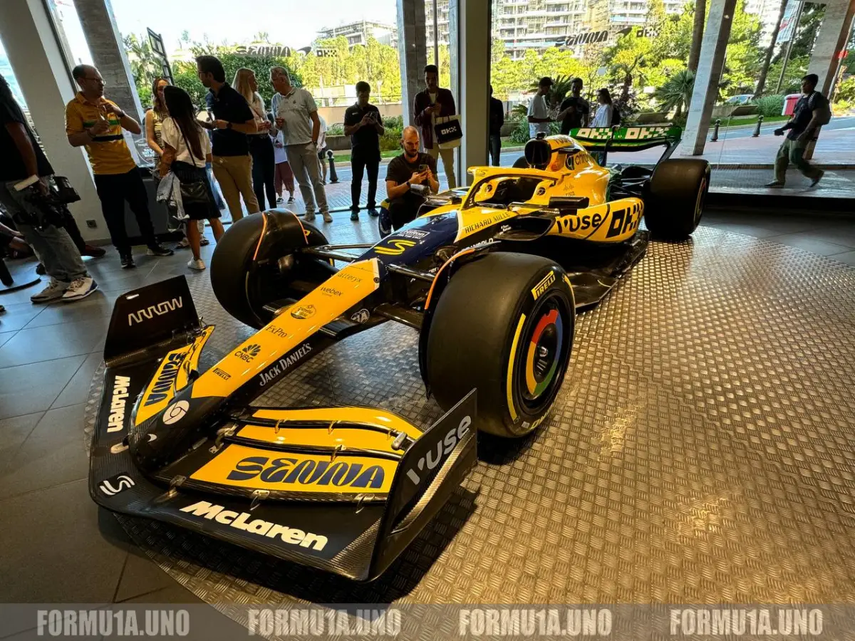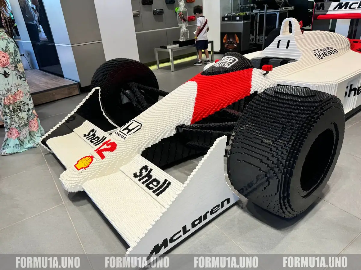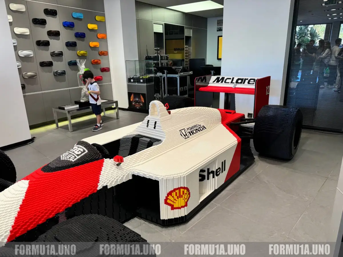 Altra particolarità presente all’evento tenuto da McLaren, alla quale formu1a.uno ha avuto il piacere di partecipare, è l’esposizione di due reperti storici ricostruiti utilizzando i Lego, i famosi blocchi giocattolo usati per composizioni di vario genere. Una pratica consueta, ma sicuramente un idea originale ed apprezzabile, ricostruendo la storica McLaren guidata da Ayrton Senna oltre che una replica del suo casco. Presenti all’evento c’erano anche i due piloti, che porteranno in pista la MCL38 giallo e verde, Lando Norris ed Oscar Piastri. I due piloti per l’occasione sfoggeranno a loro volta due caschi speciali come tributo al leggendario pilota brasiliano.