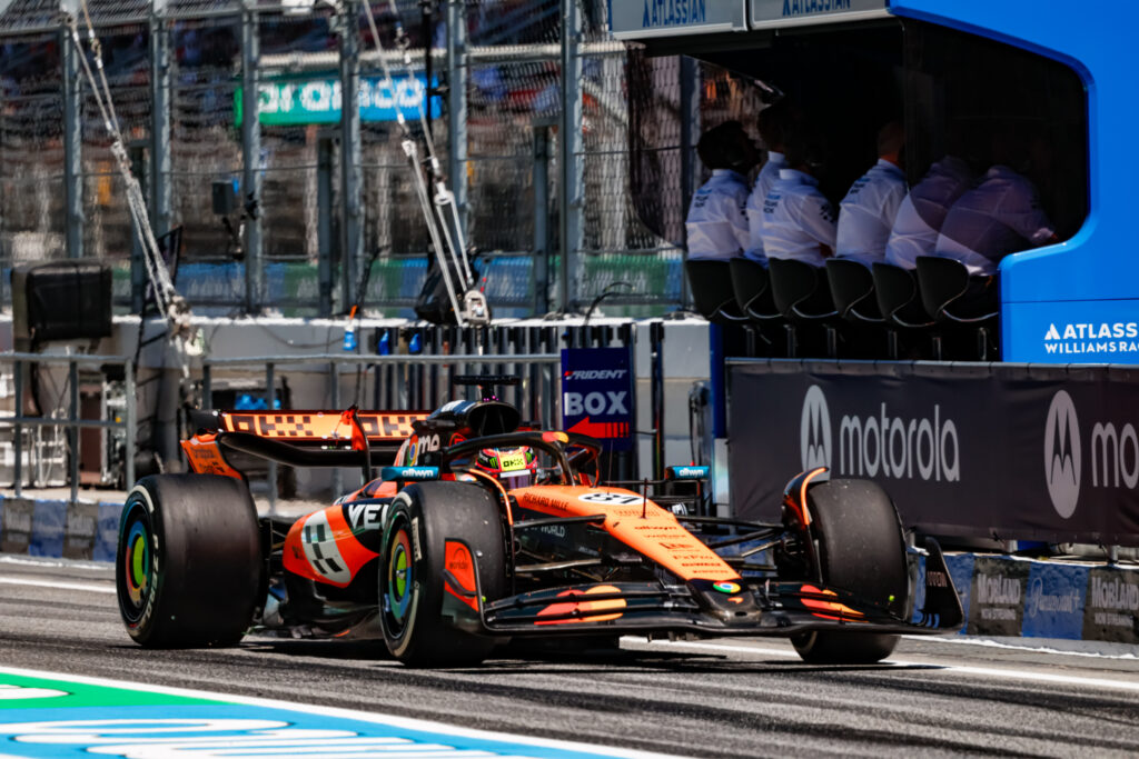 Con un tempo pari a 1’12”760, Oscar Piastri ha chiuso davanti a tutti il venerdì in pista a Barcellona. Il leader del mondiale al termine della giornata può guardare con fiducia al resto del weekend, anche alla luce del miglioramento messo in pista rispetto alle prime libere, dove aveva chiuso con il quinto tempo e con qualcosa da perfezionare in termini di sensazioni in macchina. “È stata una giornata con degli alti e bassi, ma per certi versi è finita bene, il che è positivo,” ha dichiarato Piastri al termine delle FP2. L’australiano non si è sbilanciato troppo su ciò che la McLaren potrà esprimere nel corso del weekend, spostando anzi l’attenzione sul livello degli avversari. “Gli avversari mi sono sembrati veloci. Penso che Verstappen sia stato forte per tutta la giornata. La Ferrari era lì, la Mercedes è venuta fuori alla fine, per cui domani sarà una battaglia molto serrata, però abbiamo trovato alcune cose su cui lavorare e va bene così.” In termini di feeling nelle due sessioni del venerdì, Lando Norris ha vissuto una prima giornata ‘specchiata’ rispetto al compagno, dal momento che le migliori sensazioni per lui sono arrivate nella prima sessione. “È stato un venerdì discreto, mi sono sentito meglio nel prove libere 1, piuttosto che nelle libere 2, però abbiamo provato alcune cose e continueremo a cercare di migliorare anche domani,” ha affermato il britannico.