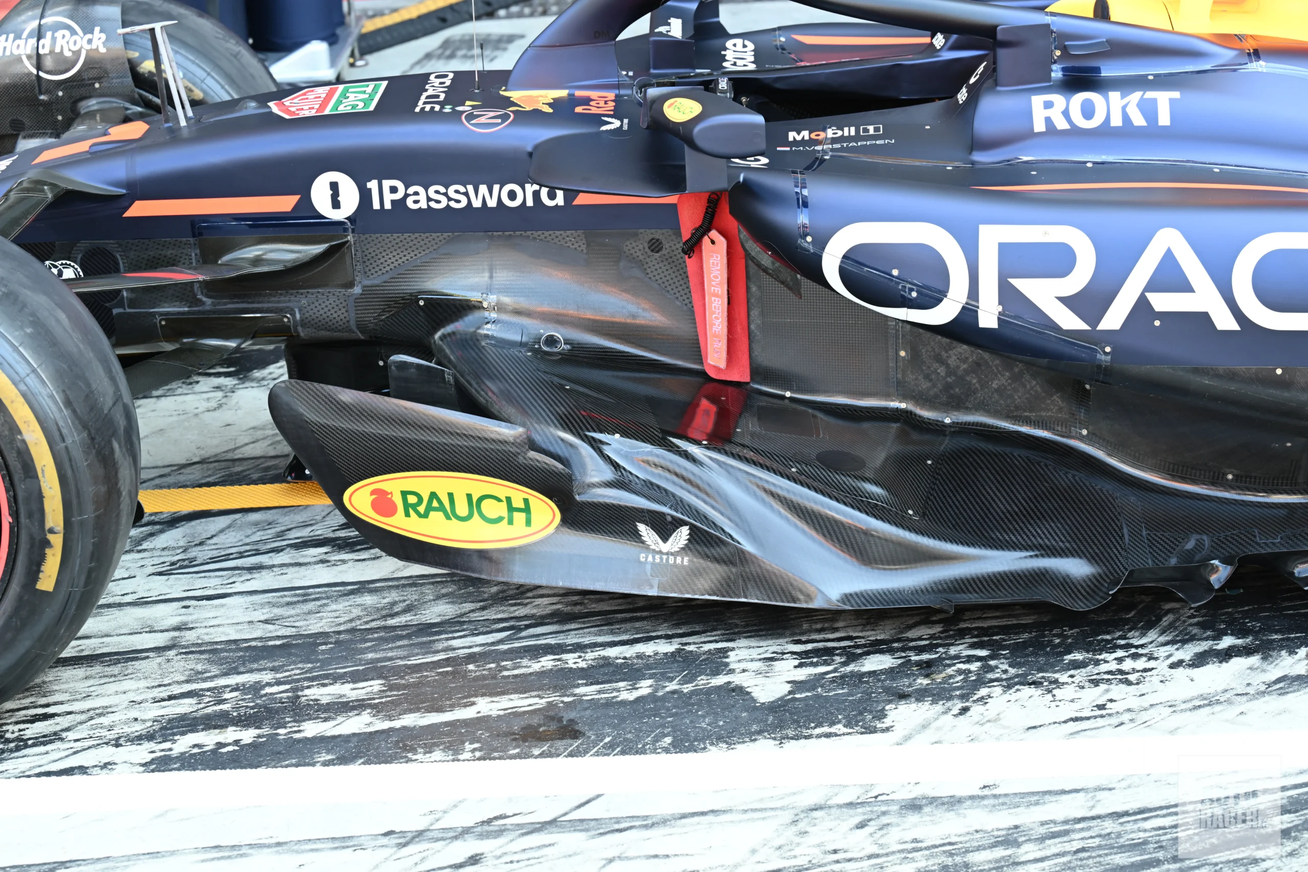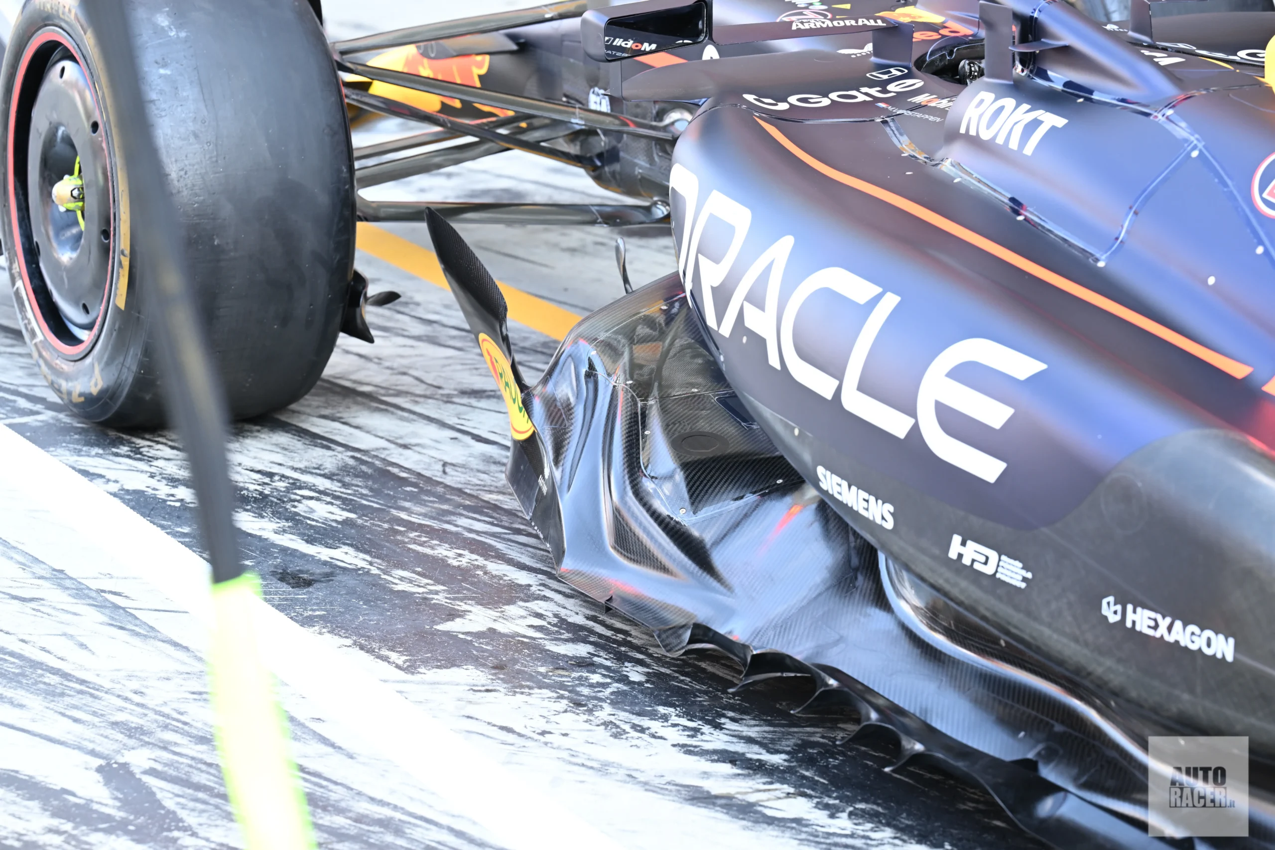 Il pacchetto più importante è però senza dubbio quello introdotto dalla Red Bull. Oltre ad una classica ala anteriore da basso carico aerodinamico, con una corda dei flap ridotta, i tecnici di Milton Keynes hanno portato qui un nuovo fondo. I tecnici di Pierre Waché hanno ritoccato le forme del fondo nella parte sottostante la vettura e di conseguenza vi sono state modifiche alle floor fences e alla parte più esposta, ossia quella laterale, del marciapiede. Tutte queste modifiche hanno l’obiettivo di generare più carico, gestire diversamente i vari punti di pressione e migliorare di conseguenza anche la stabilità della piattaforma aerodinamica. Come noto, con queste monoposto ogni modifica al fondo è delicata e le prove libere saranno importanti per studiare gli effetti.