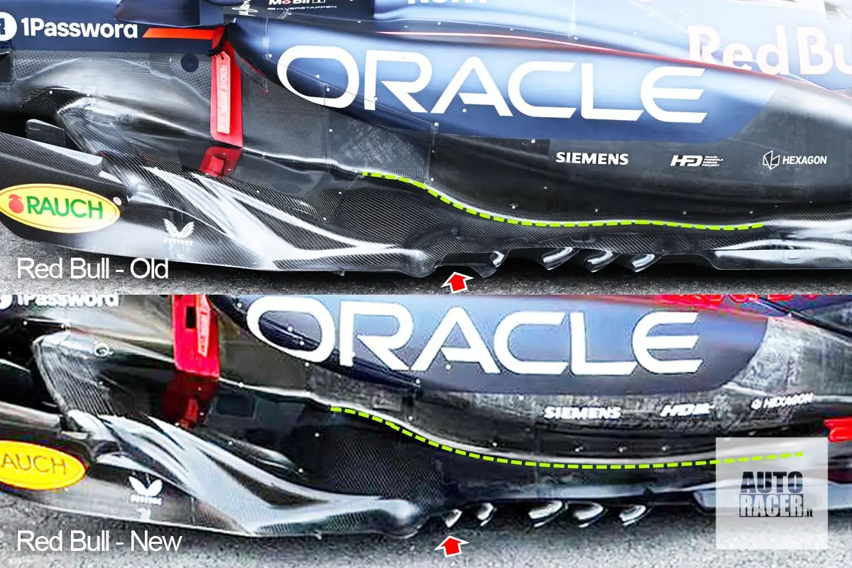 La seconda è invece nella zona più interna, vicino alle pance, che presenta ora una forma più arrotondata. Il team sta cercando di aumentare il carico della RB21 andando alla ricerca di ogni minimo guadagno, con l’obiettivo però di non modificare l’equilibrio e la stabilità che gli sviluppi precedenti hanno raggiunto, permettendo a Max Verstappen di fare il salto di qualità visto dopo la pausa estiva.
